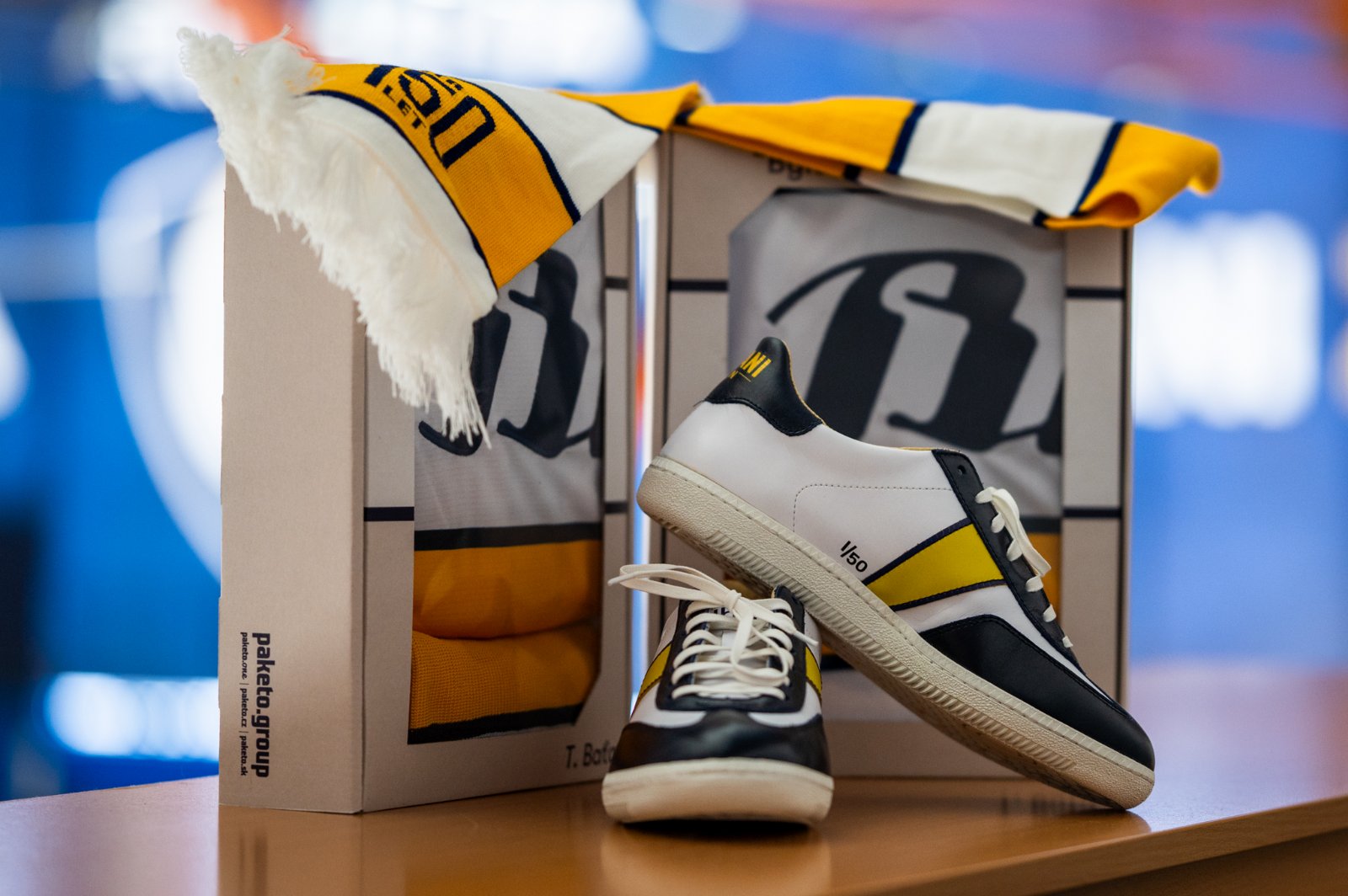 Speciální hokejová kolekce věnovaná oslavám 150 let narození Tomáše Bati je kompletní. Po dresech, šálách a pucích byla před sobotním derby přímo na ledové ploše představena limitovaná edice bot Beran TB 150, která vznikla ve spolupráci s lokální společností Vasky a její značkou Botas. Třicítka těchto exkluzivních designových párů nyní míří do on-line prodeje na webu zlínského fanshopu, který bude spuštěn v úterý 3. února od 16 hodin.
